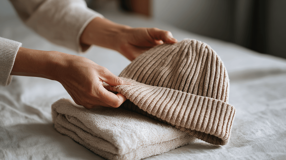 Un bon séchage est ce qui permet au bonnet de conserver sa forme et sa souplesse dans le temps — sans avoir besoin de le repasser.